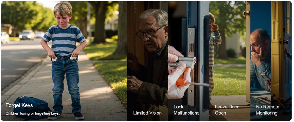 Kids can unlock via app or fingerprint, and elders just need to raise a hand — no screens, no codes, no confusion.