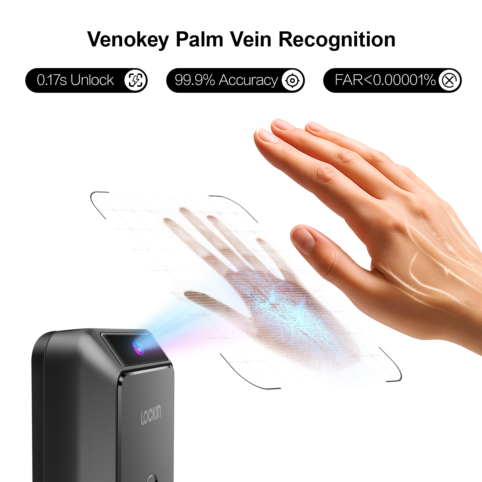 Unlike traditional biometrics, Lockin’s Venokey™ tech scans beneath your skin to recognize unique vein patterns.