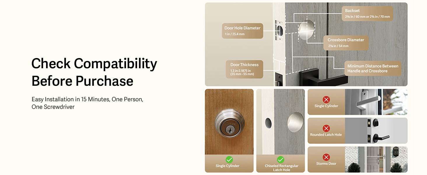 Installs in under 15 minutes using standard deadbolt holes.