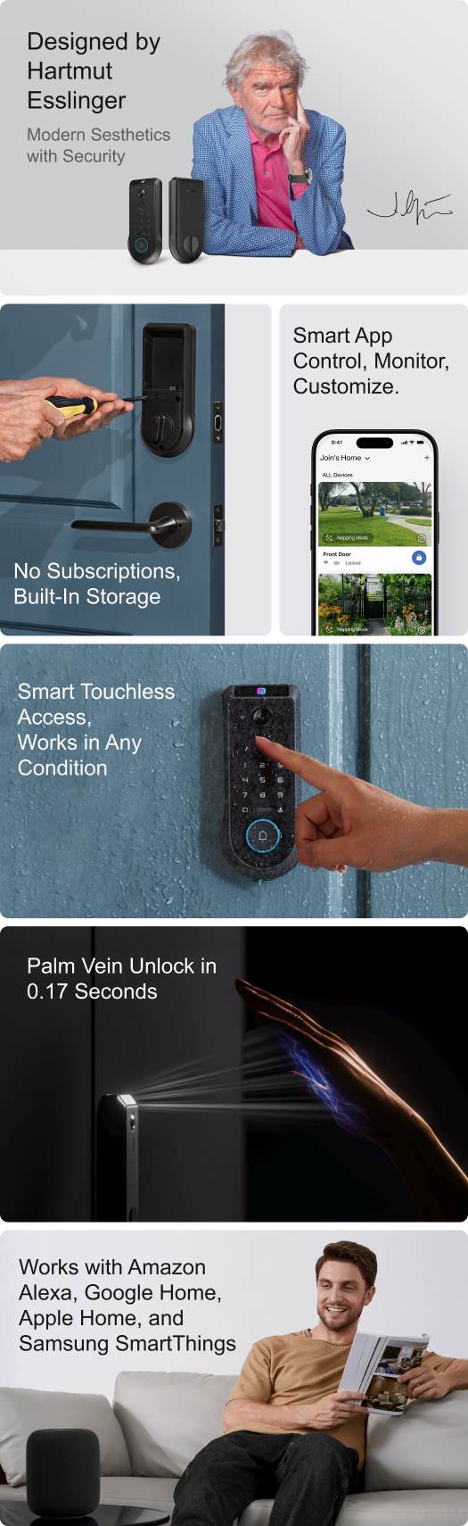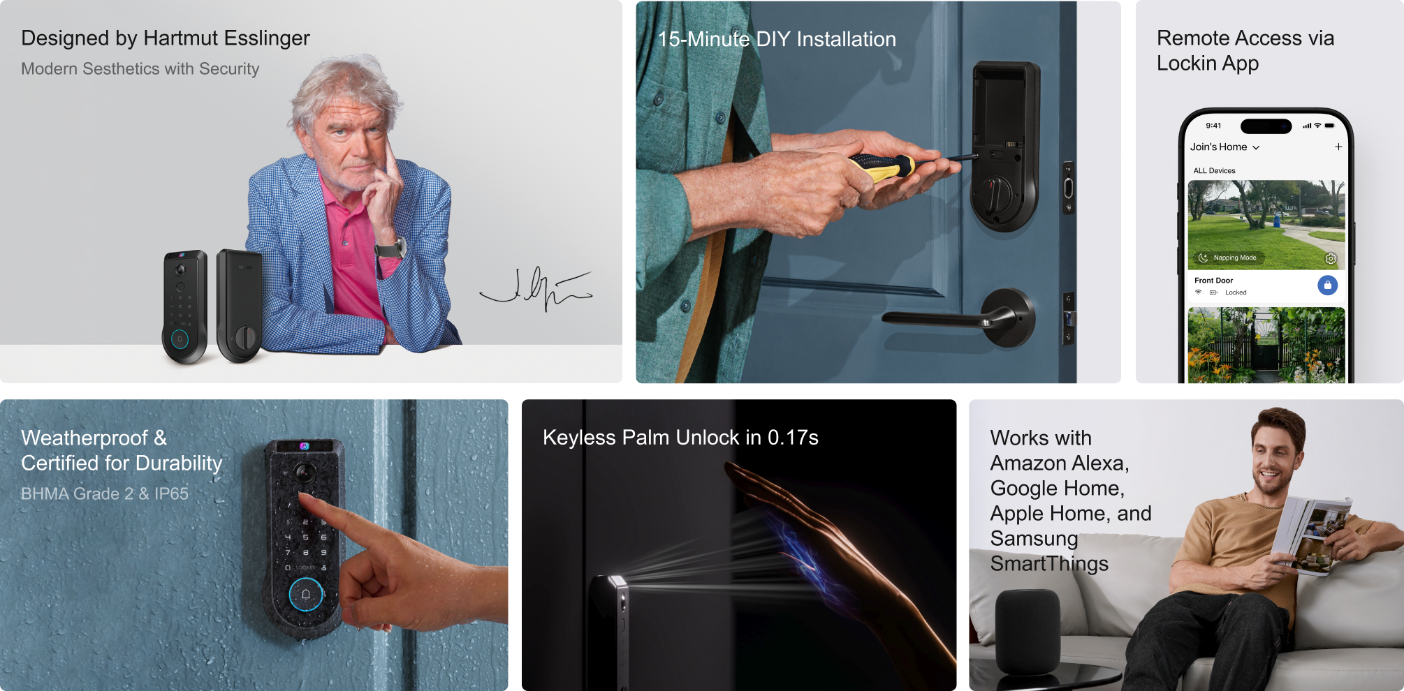 Designed by Hartmut Esslinger, Lockin blends modern aesthetics with security—offering finishes that elevate and complement your home’s renewed style.