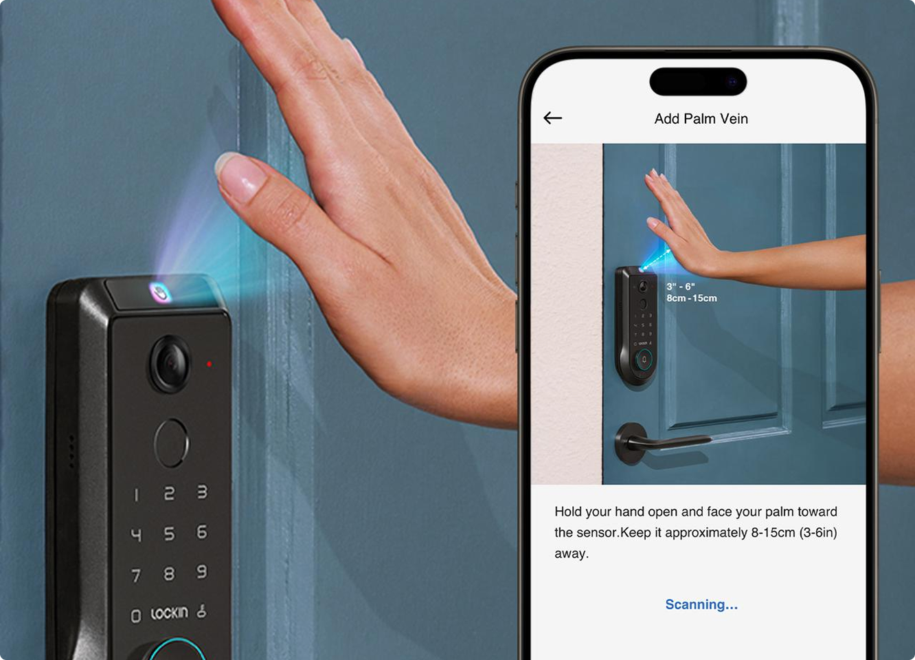 Lockin’s keyless smart lock unlocks your door with palm vein recognition—in just 0.17 seconds and with 99.9% accuracy. No more keys, no app fumbling—just a touchless wave.