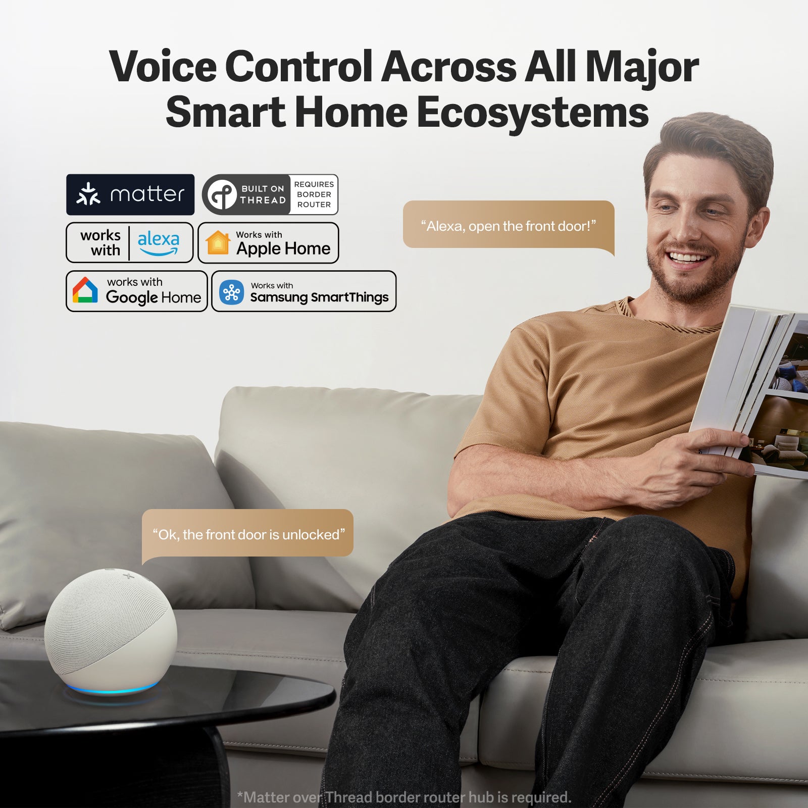 • Voice commands – Hands-free unlocking through Alexa or Google.