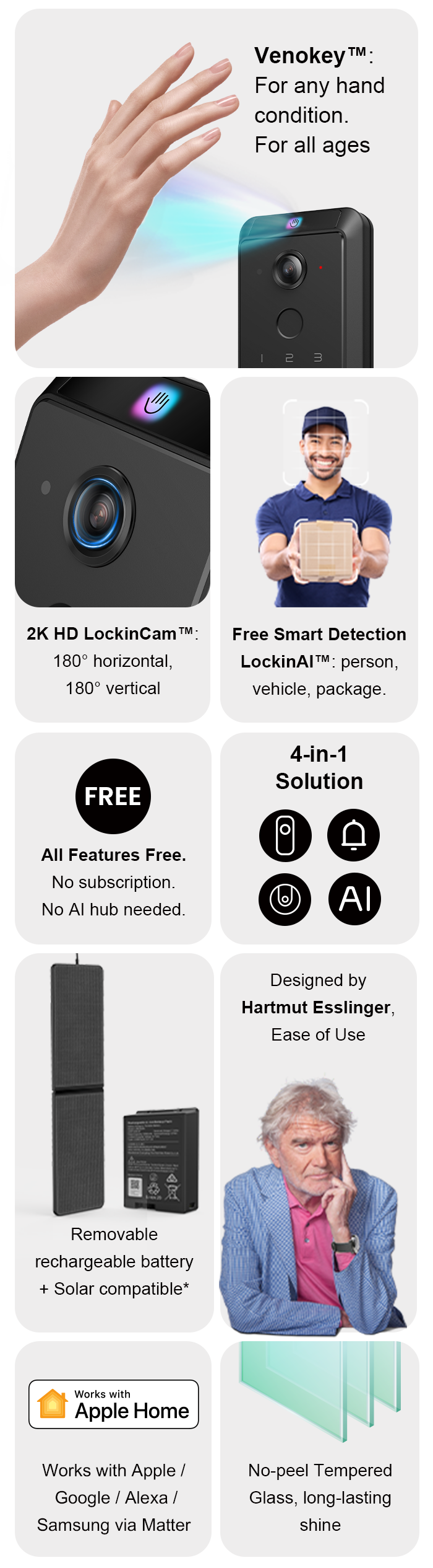 *Note that Lockin Veno series is not compatible with storm doors as the storm door may block the camera. We recommend that you ensure your door is a standard entry door without a storm door before installing this producct.